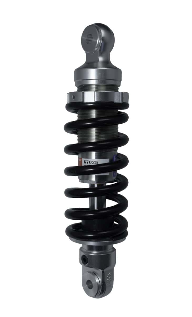 Hagon Mono Shock built to your rider weight and riding style, 38mm Stainless steel damper unit fully re-buildable, 18mm piston rod, wide ranging single circuit progressive damping adjustment with automatic compression / rebound balance. Black powder coated spring, fully progressive spring pre-load adjustment. Supplied complete with end mounting bushes / bearings, tools and instructions for spring and damping adjustments. 2-year guarantee.