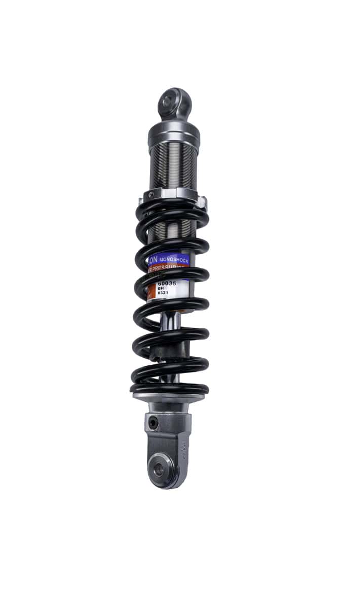 Hagon Mono Shock built to your rider weight and riding style with a 40mm Seat Height Reduction, 38mm Stainless steel damper unit fully re-buildable, 18mm piston rod, wide ranging single circuit progressive damping adjustment with automatic compression / rebound balance. Black powder coated spring, fully progressive spring pre-load adjustment. Supplied complete with end mounting bushes / bearings, tools and instructions for spring and damping adjustments. 2-year guarantee.