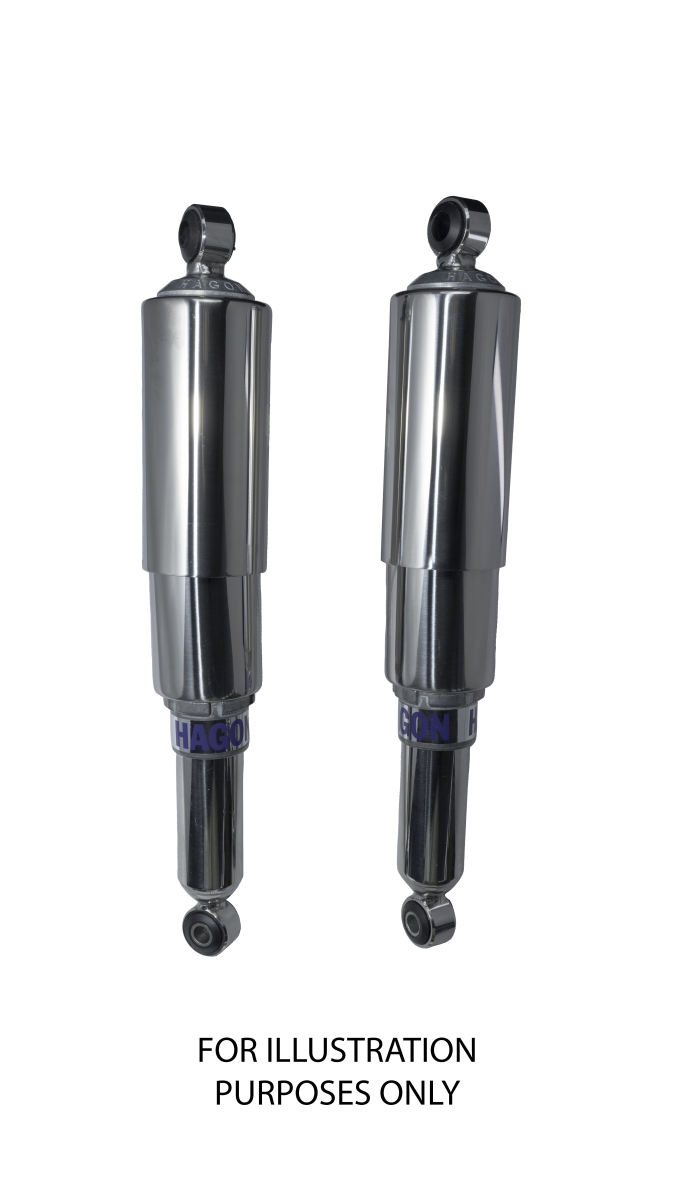 Custom Shock – Custom Classic II Full Polished Stainless Covers, Polished stainless steel 28mm sealed damper unit with full polished stainless steel covers, 3 position spring pre-load adjustment by enclosed cam. Supplied as complete pair with mounting bushes and spring adjusting C spanner. 2-year guarantee.