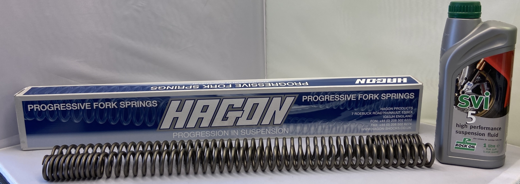 Hagon Progressive Fork Springs are designed for improved handling and rideability. The progressive winding means that as the suspension becomes compressed the springs become stronger. These forksprings come complete with oil, fitting instructions and spacers if required