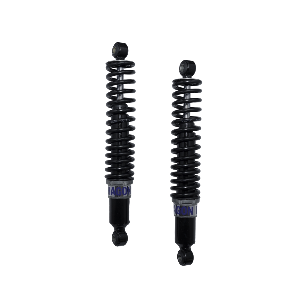 Road Shock – Slim-Line Black Spring, Black painted 28mm sealed damper unit with slim-line black spring (SS), 3 position spring pre-load adjustment by enclosed cam. Supplied as complete pair with mounting bushes and spring adjusting C spanner. 2-year guarantee.