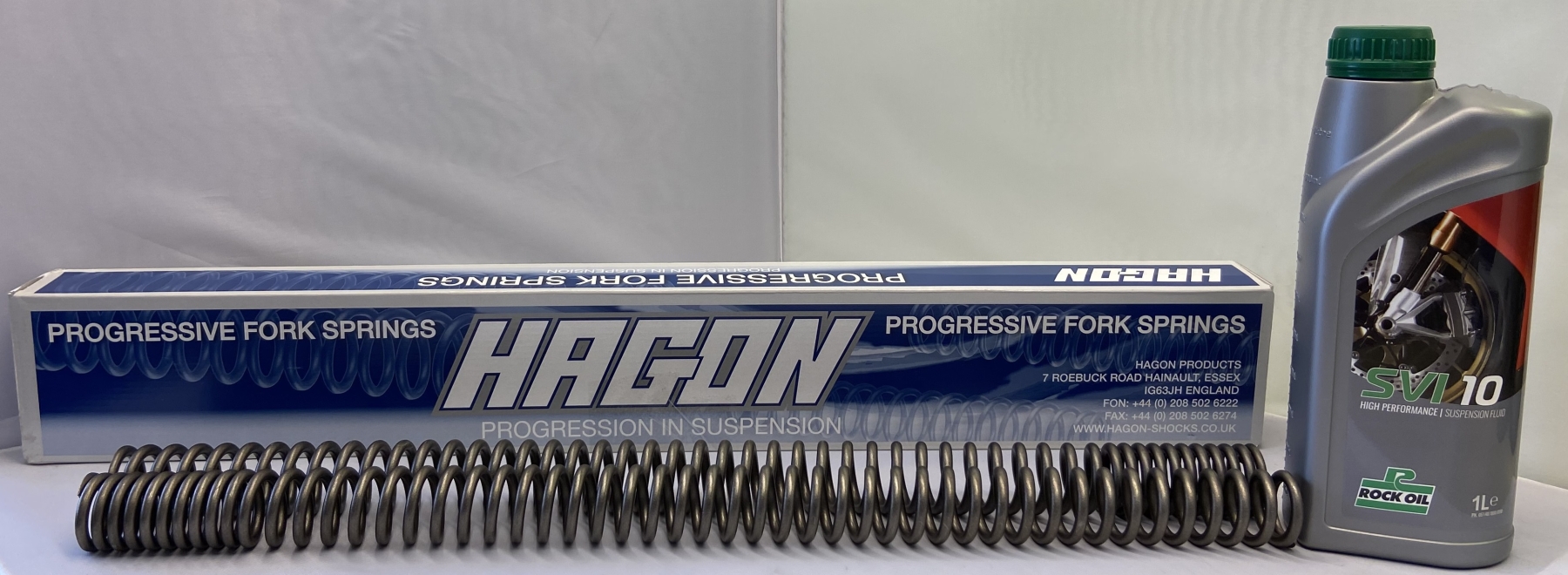 Hagon Progressive Fork Springs are designed for improved handling and rideability. The progressive winding means that as the suspension becomes compressed the springs become stronger. These forksprings come complete with oil, fitting instructions and spacers if required